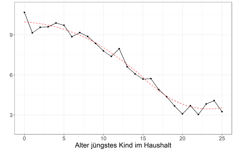 In drei von vier Paarhaushalten (75 Prozent) mit jüngstem Kind unter 25 Jahren sind heute beide Elternteile erwerbstätig. Nach wie vor sind es aber die Mütter, die mehr Familienarbeit verrichten, während sich die Väter auf das Erwerbsleben konzentrieren. So arbeitet bei fast drei Vierteln (71,3 Prozent) der Paare mit Kindern der Mann Vollzeit und die Frau Teilzeit oder gar nicht. Das egalitäre Doppelversorgermodell, bei dem sich beide Elternteile zu ähnlichen Teilen dem Erwerbsleben widmen, ist weit seltener (15,3 Prozent). Bei fast 70 Prozent der Paarhaushalte mit Kind(ern) werden die Haushaltsarbeiten hauptsächlich von der Frau erledigt. Wenn Betreuungsaufgaben für Kinder anstehen, ziehen sich meistens die Frauen von der Erwerbstätigkeit zurück, was sich auf ihre späteren Erwerbschancen und damit auf ihr Armutsrisiko auswirken kann. So haben Einelternhaushalte und besonders alleinerziehende Mütter ein deutlich erhöhtes Armutsrisiko.